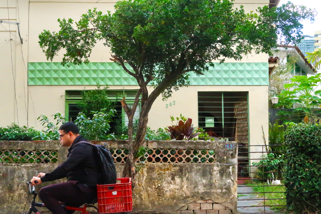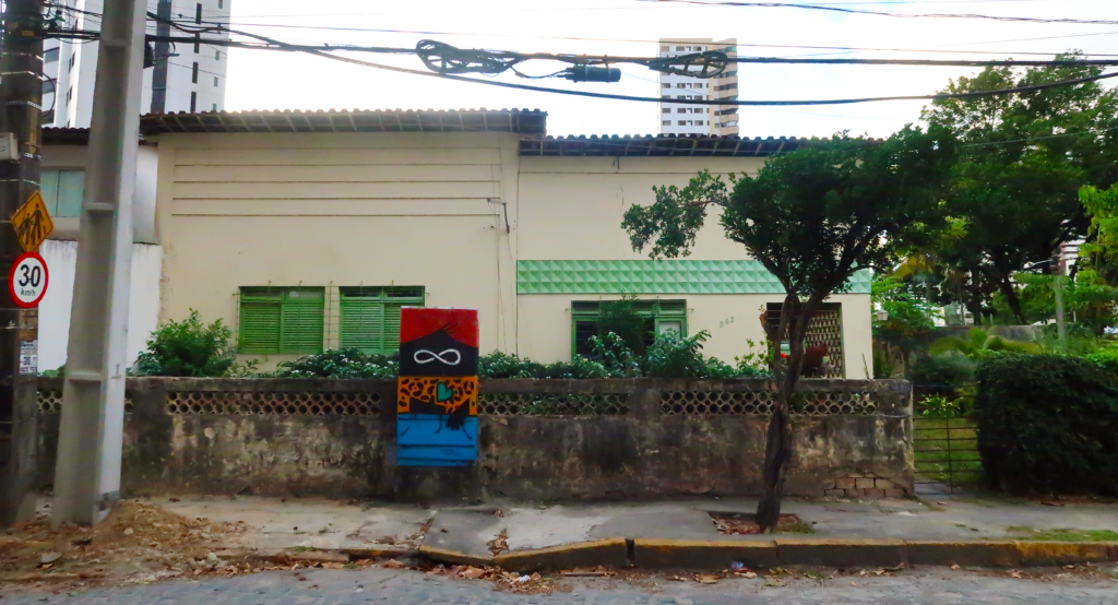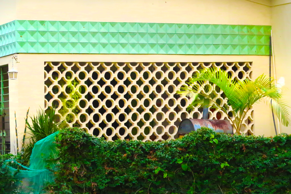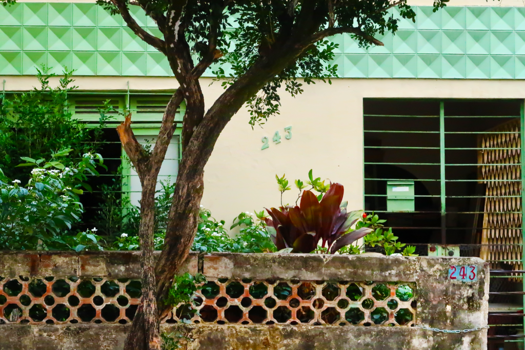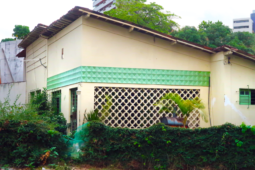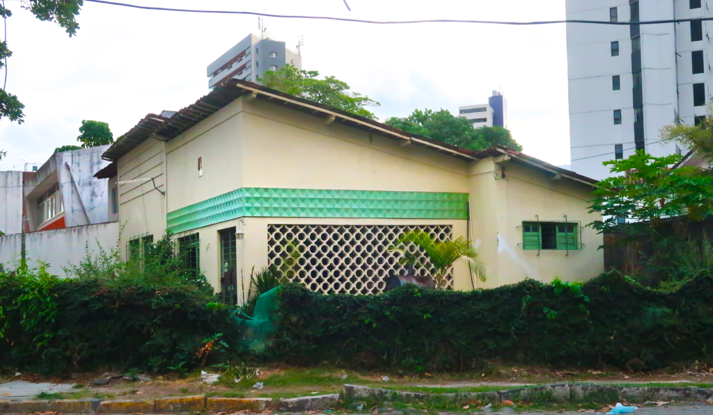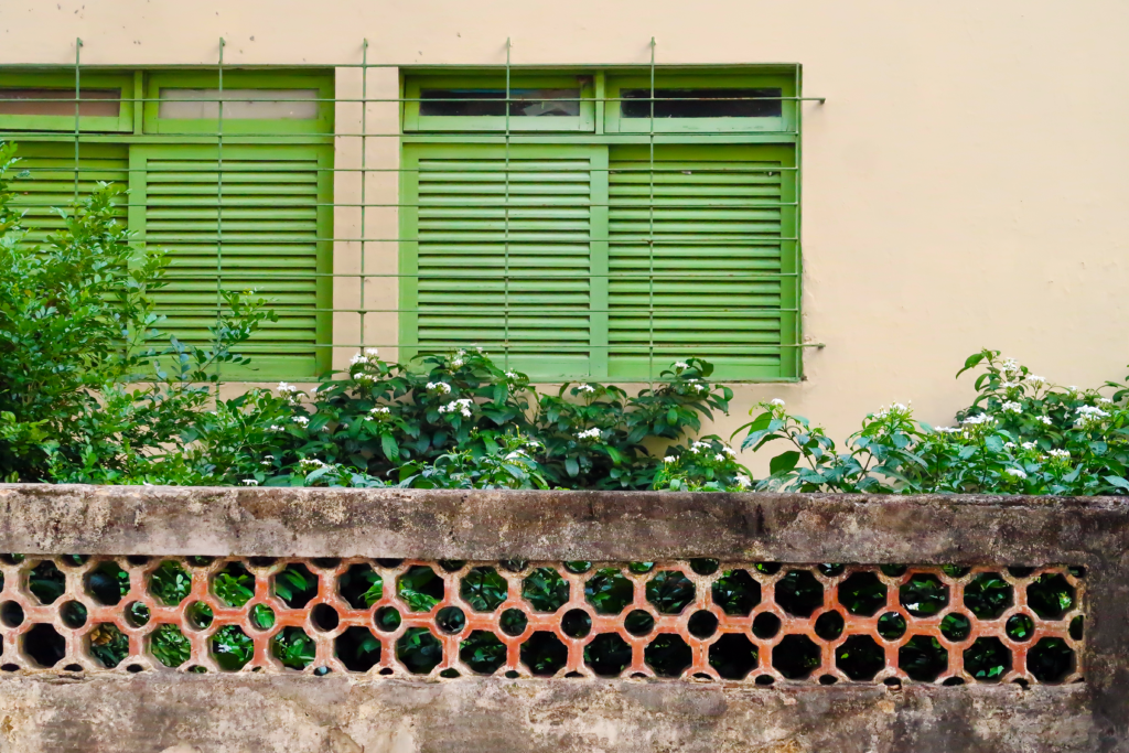 Não se vê o muro da casa, ele é todo tomado de heras. Muro baixo, na altura da cintura e mesmo assim é difícil ver seus moradores.