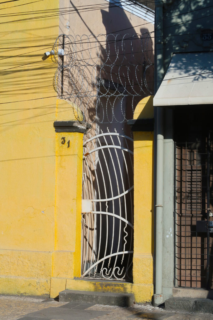 Securitização é um dos sinais mais visíveis do esvaziamento e do iminente desaparecimento das casas e das edificações abertas em uma metrópole. O medo de ser invadido, roubado, ocupado transparece nas construções que sobrevivem na cidade e durante a pesquisa nos deparamos com diversas versões desta securitização. Toda sorte de arames, redes, câmeras, ganchos, grades. Todas tentam proteger o bem privado enquanto não parece mais haver espaço para a emergência daqueles bens que são comuns e compartilhados.